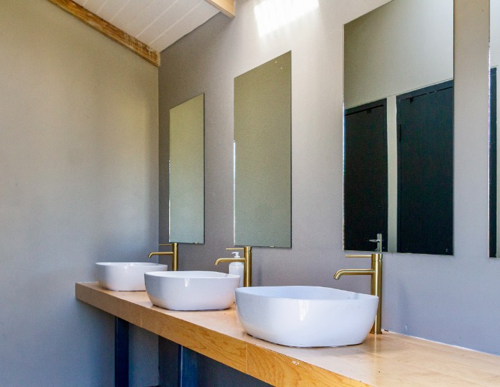 For added practicality, we’ve also installed two outdoor wash-up basins, located just outside the ablution block. These are perfect for washing dishes, prepping meals, or rinsing gear after a day of adventure.